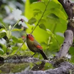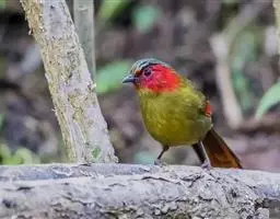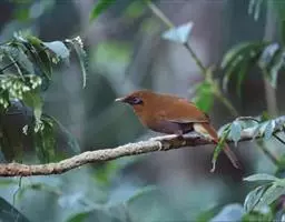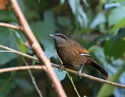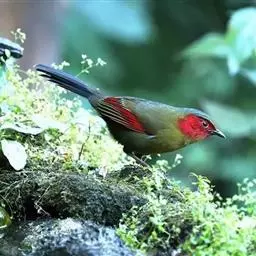 红翅薮鹛是噪眉科、薮鹛属中型鸟类,体长21-24厘米。头顶灰褐色,头侧和颈侧赤红色,上体橄榄褐色,…