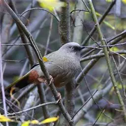 橙翅噪鹛:是噪鹛科、彩翼噪鹛属的中型鸟类,体长22-25厘米。头顶深葡萄灰色或沙褐色。上体灰橄榄褐色,…