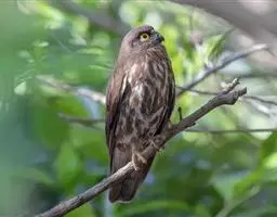 褐林鸮是夜行猛禽。喙坚强而钩曲。嘴基蜡膜为硬须掩盖。翅的外形不一,第五枚次级飞羽缺。尾短圆,…