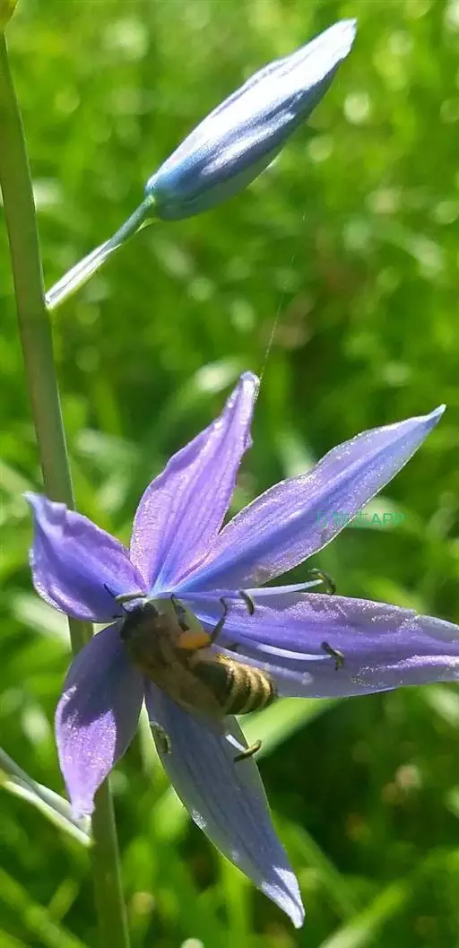 花数朵生于一约与叶柄等长或略短的总花梗上,下托一佛焰苞;佛焰苞舟状,长达20厘米,绿色,边紫红,萼片披针形,长7.5-10厘米,橙黄色,箭头状花瓣基部具耳状裂片,和萼片近等长,暗蓝色;雄蕊与花瓣等长;花药狭线形,花柱突出,柱头3。
