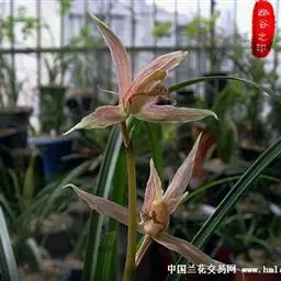 寒兰是兰科兰属的地生草本植物。茎为椭圆形;叶呈带状,尾部修长渐尖,叶脉较明显;每秆花枝开5-12朵,…
