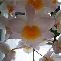 束花石斛是兰科石斛属植物。茎粗厚,肉质,下垂或弯垂,圆柱形,不分枝,具多节。叶二列,互生于整个茎上,…