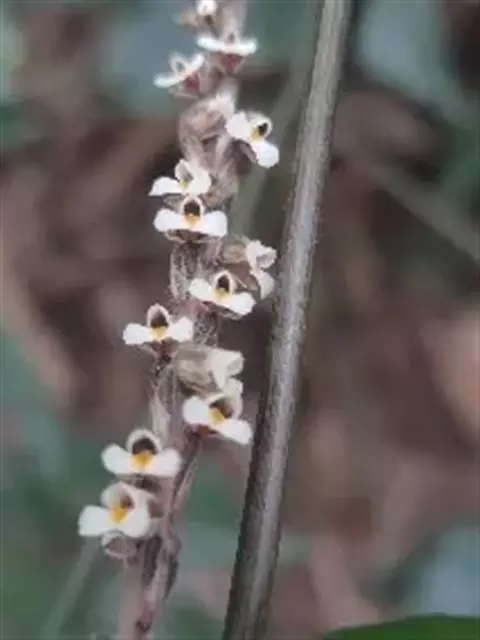 吻兰 Tang et Wang):假鳞茎细圆柱形,貌似叶柄,基部稍扩大并多少贴伏于根状茎上,被鞘。…