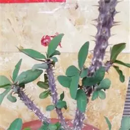 虎刺梅:别称铁海棠,是蔓生灌木植物。茎多分枝,长60-100厘米,直径5-10毫米,具纵棱,密生硬…