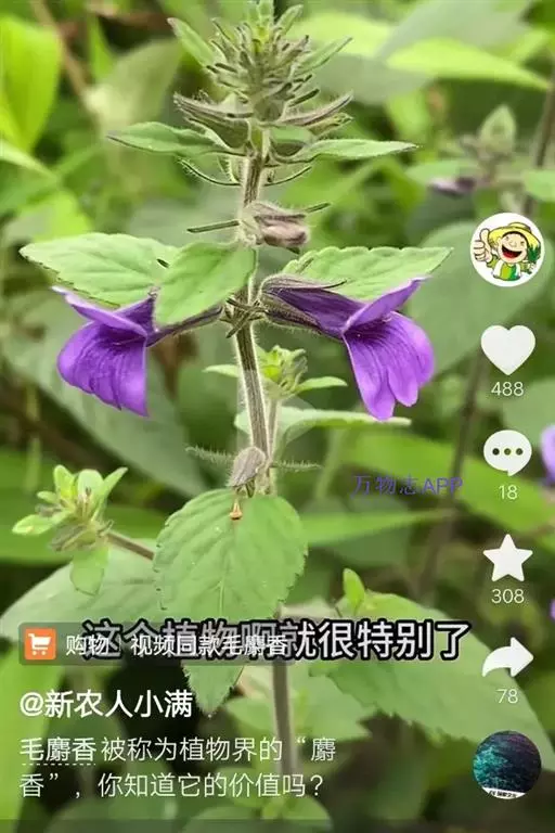 直立 毛麝香 草本,被粘质疏长毛,密被多细胞长柔毛和腺毛,高30-100厘米。茎圆柱形,上部四方形,中空,简单或常有分枝。叶对生,上部的多少互生,有长3-20毫米的柄;叶片披针状卵形至宽卵形,长2-10厘米,宽1-5厘米,其形状、大小均多变异,先端锐尖,基部楔形至截形或亚心形,边缘具不整齐的齿,有时为重齿,上面被平伏的多细胞长柔毛,沿中肋凹沟密生短毛;下面亦被多细胞长柔毛,尤以沿中肋及侧脉为多,并有稠密的黄色腺点,腺点脱落后留下褐色凹窝。