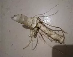 呈长圆柱形,略扁,少有分枝,长4~18cm,直径0.3~1.6cm。表面黄白色或淡黄棕色,半透明,具纵皱纹和微隆起的环节,有白色圆点状的须根痕和圆盘状茎痕。质硬而脆或稍软,易折断,断面角质样或显颗粒性。气微,味甘,嚼之发黏。