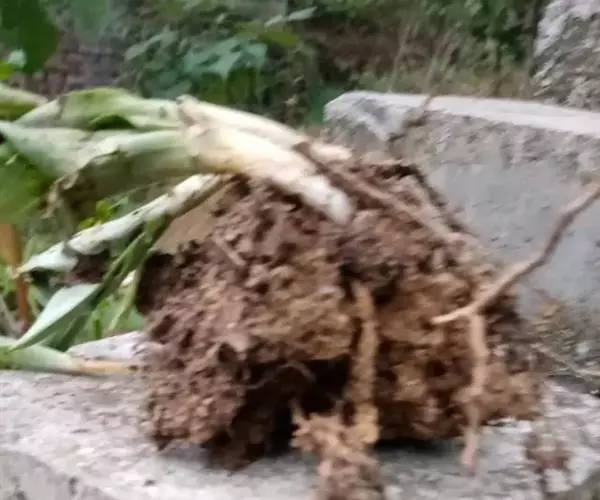 呈不规则厚片或段。外表皮黄白色至淡黄棕色,半透明,有时可见环节。切面角质样或显颗粒性。气微,味甘,嚼之发黏。