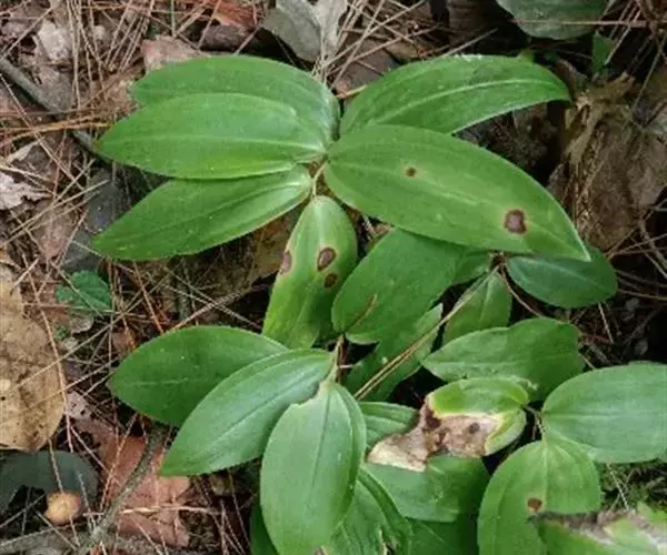 根状茎圆柱形,直径5~14毫米。茎高20~50厘米,具7~12叶。叶互生,椭圆形至卵状矩圆形,长5~12厘米,宽3~16厘米,先端尖,下面带灰白色,下面脉上平滑至呈乳头状粗糙。花序具1~4花(在栽培情况下,可多至8朵),总花梗(单花时为花梗)长1~1.5厘米,无苞片或有条状披针形苞片;花被黄绿色至白色,全长13~20毫米,花被筒较直,裂片长约3~4毫米;花丝丝状,近平滑至具乳头状突起,花药长约4毫米;子房长3~4毫米,花柱长10~14毫米。浆果蓝黑色,直径7~10毫米,具7~9颗.种子。花期5~6月,果期7~9月。