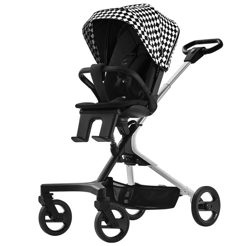 这种车在市面上比较少见,除可平躺以为外,座椅独特的360°旋转,并且不用提起座位。并有 0°、90°、180°、270°四种不同角度定位,方便宝宝不同的方向观看,0°方向向前看,90°和270°方向可以看路两边的风景不用看大人的脚后跟和去闻汽车尾气,180°的方向正面对着妈妈。