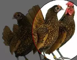 勺鸡(学名:Pucrasia macrolopha):体长390-630毫米,体重750-1100克。体形适中,头部完全被羽,无裸出部,并具有枕冠。第1枚初级飞羽较第2枚短甚,第2枚与第6枚等长;第4枚稍较第3枚为长,同时也是最长的。尾羽16枚,呈楔尾状;中央尾羽较外侧的约长一倍。跗蹠较中趾连爪稍长,雄性具有一长度适中的钝形距。雌雄异色,雄鸟头部呈金属暗绿色,并具棕褐色和黑色的长冠羽;颈部两侧各有一白色斑;体羽呈现灰色和黑色纵纹;下体中央至下腹深栗色。雌鸟体羽以棕褐色为主;头不呈暗绿色,下体也无栗色。