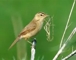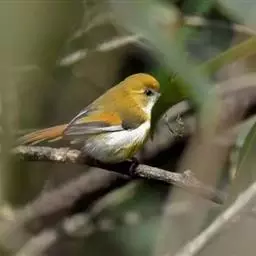 日本歌鸲:体型小似麻雀,但羽毛颜色较为美丽。嘴细长,嘴须不发达;翅短圆,上体草黄褐;雄鸟喉部橙棕色,…