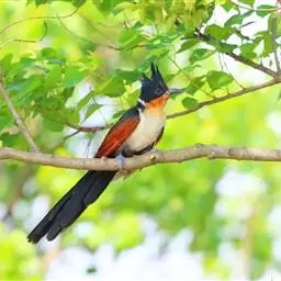 红翅凤头鹃:体长约38厘米,顶冠及凤头黑色,具显眼的直立凤头,背及尾黑色而带蓝色光泽,翅栗红色,…