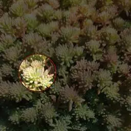 八宝(学名:Hylotelephium erythrostictum (Miq.) H. Ohba):多年生草本。块根胡萝卜状。茎直立,高30-70厘米,不分枝。叶对生,少有互生或3叶轮生,长圆形至卵状长圆形。伞房花序顶生;花密生,直径约1厘米,花梗稍短或同长;萼片5,卵形,长1.5毫米;花瓣5,白色或粉红色,宽披针形,长5-6毫米,渐尖。花期8-10月。
