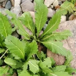 基生叶少数,大头羽状浅裂,长10-20厘米,至少在幼时下面脉上及边缘有少数刺毛,顶裂片宽卵形,长达9厘米,顶端圆钝,边缘有不整齐尖齿,基部有2显明侧裂片及数个小裂片,疏生;叶柄长3-4.5厘米;茎生叶似基生叶,长5-12厘米;上部茎生叶长圆披针形,近全缘或全缘,无柄或稍抱茎。