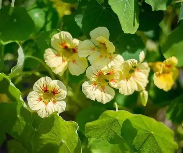 叶肥花美,花色有紫红、橘红、乳黄等,金莲花蔓茎缠绕,叶形如碗莲,乳黄色花朵盛开时,如群蝶飞舞,是一种重要的观赏花卉。