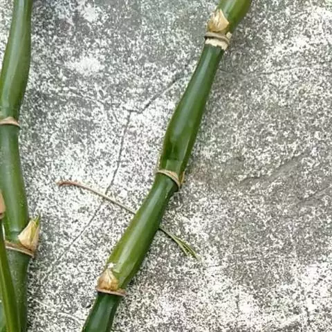 假鞭粗约2.5厘米,圆柱形,实心,节间长10-15厘米,在地中横走可延伸至5米之遥。竿劲直,末梢点垂,高8-20米,直径3-7厘米;节间圆筒形,长(12)20-50厘米,幼时绿色,薄被白粉并混生柔毛,老则呈枯草色,光滑无毛,竿壁厚5-7.5毫米;竿环不隆起,仅其箨环较明显;