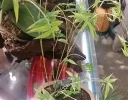 • 凤尾竹 Raeusch. ex Schult. ’Fernleaf’ R. A. Young)是禾本科,簕竹属孝顺竹的变种。植株较高大,杆高可达6米,竿中空,小枝稍下弯,下部挺直,绿色;竿壁稍薄;节处稍隆起,无毛;叶鞘无毛,纵肋稍隆起,背部具脊;叶耳肾形,边缘具波曲状细长繸毛;叶舌圆拱形,叶片线形,上表面无毛,下表面粉绿而密被短柔毛,小穗含小花,中间小花为两性;外稃两侧稍不对称,长圆状披针形,先端急尖;内稃线形,脊上被短纤毛,花药紫色,子房卵球形,羽毛状。成熟颖果未见。原产中国,华东、华南、西南以至台湾、香港均有栽培。凤尾竹喜温暖、湿润和阳光充足的环境,耐寒。宜土层深厚、肥沃、疏松的微酸性壤土。该种观赏价值较高,宜作庭院丛栽,也可作盆景植物。全草或根入药,味淡、微苦,性寒,有清热利湿、凉血止血、消肿解毒功效,可治痢疾、泄泻等多种病症。凤尾