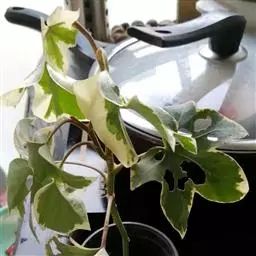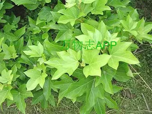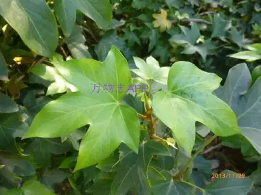 常绿性藤蔓植物,高可达1米以上。初生时茎呈草质,后渐转木质化。单叶互生,掌状五裂,叶端渐尖,叶基心形,叶宽12~16厘米,全缘,波状有扭曲,新叶密被毛茸,老叶浓绿而光滑。叶柄长8~10厘米,柄基呈鞘状与茎枝连接。成年植株在秋天开淡绿色小花。 高可达1米以上。