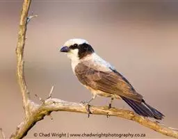 白肩鹊鵙(学名:Corvinella melanoleucus)是小型鸣禽。喙粗壮而侧扁,先端具利钩和齿突,嘴须发达;翅短圆;尾长,楔形;跗跖强健,趾具钩爪。头大,自嘴基过眼至耳羽区有一宽的过眼纹。为“雀中猛禽”,停栖静伺而伏击猎物,以昆虫、蛙、蜥蜴等小动物为食,大型伯劳可捕食鼠类及小鸟。常将猎物挂在树枝上,有“屠夫鸟”之称。在树上筑碗状巢,产卵4~9枚,由雌鸟孵化约15天,雏期约15~18天,双亲哺育。