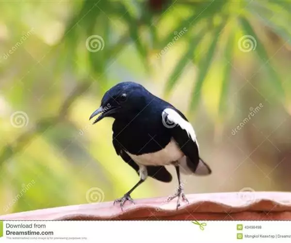 白肩鹊鵙包括尾巴体长34-50厘米,雄鸟尾长22-35厘米,尾长21-34厘米;雄鸟体重55-97克,雌鸟体重71-96克 。这种伯劳和喜鹊的羽毛很相似,和伯劳科的其他鸟类相比具有非常鲜明的颜色和图案。成鸟有黑色和白色的羽毛,尾巴很长。头和翕具有光泽的黑色,翅上有大块白色,臀部有V形的灰白色,在飞行时更为显眼。上覆羽黑色,次级和三级飞羽黑色有白色斑块。长长的尾巴黑色。下体,颏、喉和胸都是黑色的,具褐色光泽,腹部和侧面是乏味的黑色。 尾巴覆羽黑色。 雌雄相似。鸟喙黑色,眼睛深褐色,腿和脚都是黑色。