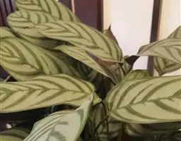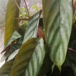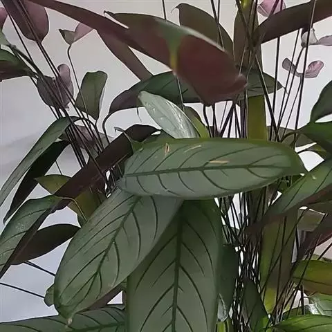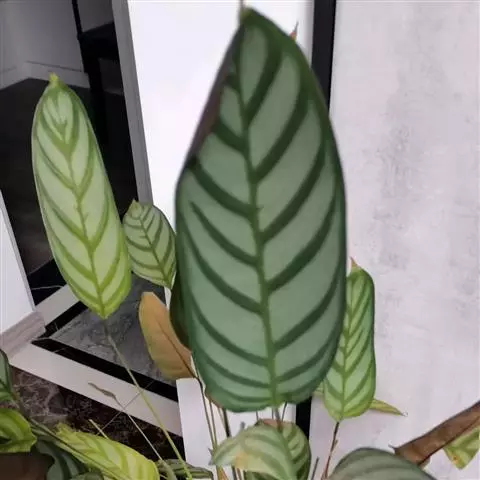 豹纹竹芋(学名:Maranta leuconeura E.Morren)竹芋科,肖竹芋属多年生常绿草本观叶植物。株高可达30厘米,多分枝,叶宽矩圆形,正面有光泽淡绿色,叶背灰绿色。叶倒卵形,柄基部鞘状。总状花序,花成对,苞片少数,萼片披针形;花冠管圆柱形,基部肿胀,花柱粗。坚果状,不开裂;种子1枚。