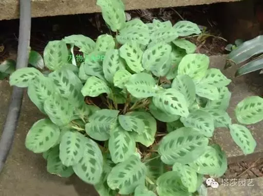 应依据“勤施薄施”的原则,生长旺季每2周施一次花生麸与复合肥的混合肥或腐熟堆肥。肥料的营养成分应以氮肥为主,磷、钾肥次之。由于竹芋为观叶植物,适当增施氮肥,能使叶片色泽更加优美。另外,可用含氮量达46%的尿素配制成0.1%的溶液,加含磷大于50%、含钾大于30%的磷酸二氢钾配制成0.2%的溶液作根外追肥,在早上露水未干时或傍晚施用效果较好。喷施时要用细孔喷雾器把叶片正反两面全喷到,每周喷1次,连续喷施3次后停止1次,然后再连续喷施。特别要注意的是施肥的浓度不宜过大,否则易引起叶片灼伤造成肥害,严重时甚至引起植株枯死。冬季休眠期和夏天太炎热时,要停止施肥。