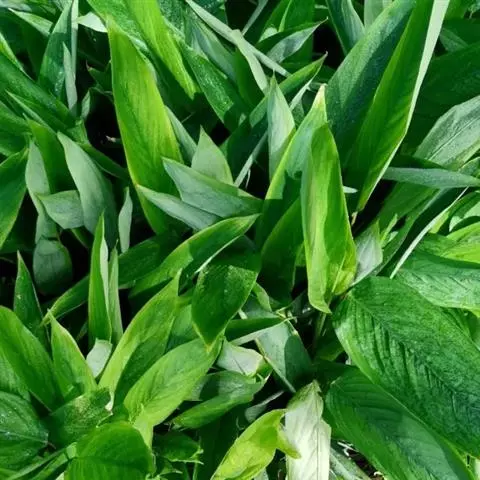 叶宽矩圆形,长8厘米至15厘米,宽7厘米至10厘米,基部心形,前端尖凸,正面淡绿色,有光泽,侧脉6对至8对,脉间有两列对称呈羽状排列的斑纹,初为灰褐色,后呈深绿色,叶背灰绿色。 柄基部鞘状。