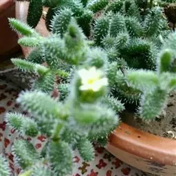 玉米石是景天科、景天属植物。多年生草本多浆植物。植株低矮丛生,多分枝。叶膨大成圆筒形、卵形或近小球形,…