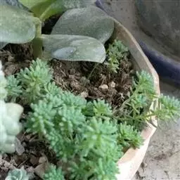 薄雪万年草别名矶小松,景天科景天属多年生草本植物,其细小的蓝绿色棒状叶片环绕生长于茎端,…