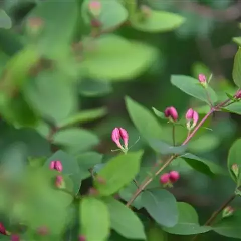 蓝叶忍冬叶色独特,花色粉红,枝叶繁茂,果实鲜红,是中国华北地区不可多得的观叶、观花、观果花灌木。一年两次开花结果,其观赏程度高、观赏期长,可植于草坪中、水边、庭院等,也可做绿篱应用。