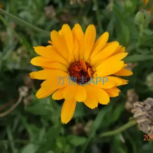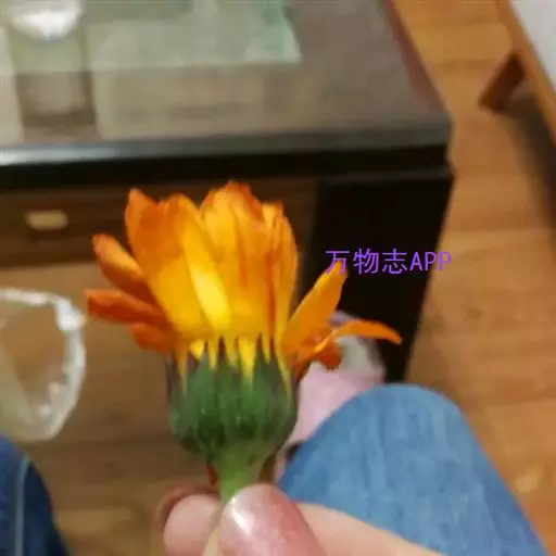 金盏花(Calendula officinalis L.),为菊科两年生草本,全株被毛。叶互生,长圆形。花黄色或橙黄色,花期4~9月,果期6~10月。喜生长于温和、凉爽的气候,怕热、耐寒。原产于南欧、地中海沿岸一带。