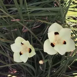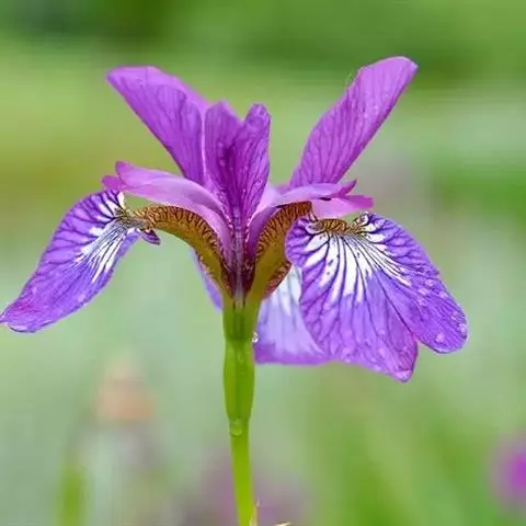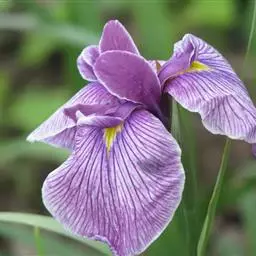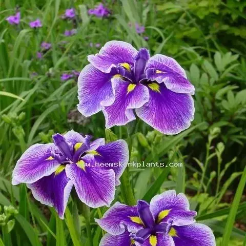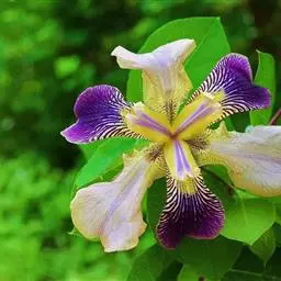 双色野鸢尾为多年生草本植物,叶子呈剑状淡绿色。…
