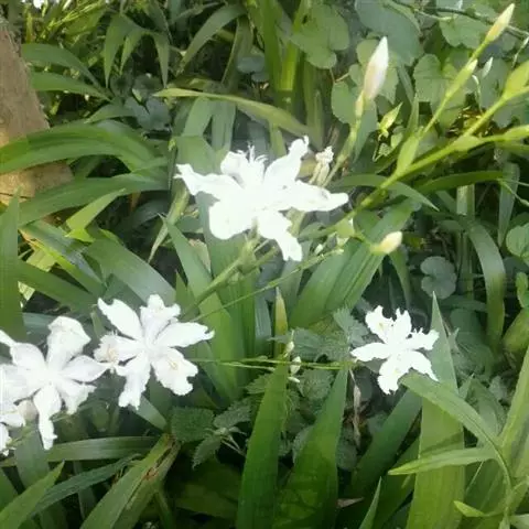 亮叶鸢尾为常绿多年生草本植物。叶面光滑、亮绿色,花茎扁平叶状。原产于巴西。