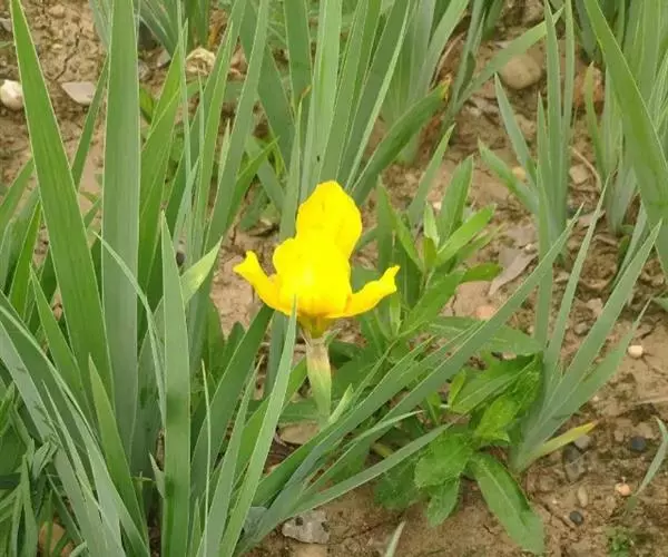 黄菖蒲是多年生草本植物,植株基部围有少量老叶残留的纤维。根状茎粗壮,直径可达2.5厘米,斜伸,节明显,黄褐色;须根黄白色,有皱缩的横纹。基生叶灰绿色,宽剑形,长40-60厘米,宽1.5-3厘米,顶端渐尖,基部鞘状,色淡,中脉较明显。