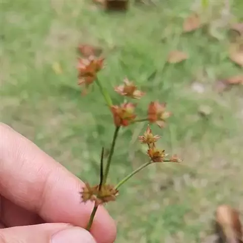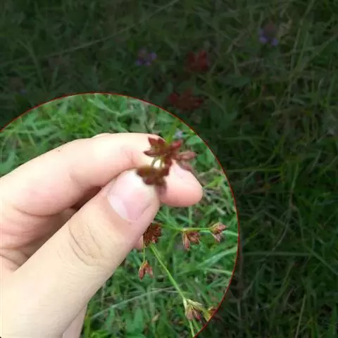 花序由5-20(-30)个头状花序组成,排列成顶生复聚伞花序,花序常分枝,具长短不等的花序梗;头状花序半球形至近圆球形,直径7-lO毫米,有(4-)8-15(20)朵花;叶状总苞片常1枚,线形,短于花序;苞片多枚,宽卵形或卵状披针形,长2-2.5毫米,顶端锐尖或尾尖,膜质,背部中央有1脉;花具短梗;花被片线状披针形至狭披针形,长3.5-4毫米,宽约1毫米,内外轮等长或内轮者稍短,顶端尖锐,背面有纵脉,边缘狭膜质,绿色或淡红褐色;雄蕊通常3枚,花药线形,长0.9-1毫米,淡黄色;花丝长1.2-1.4毫米;花柱甚短;柱头3分叉,细长,常弯曲。