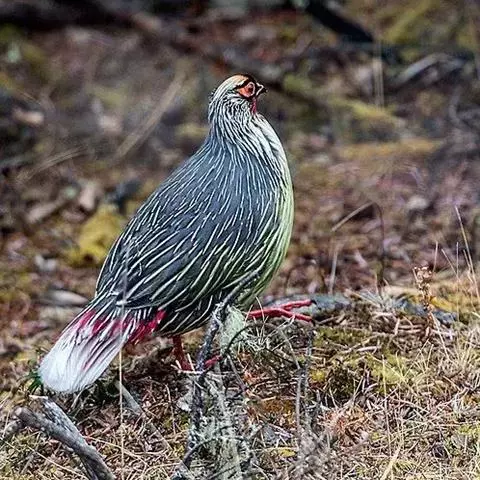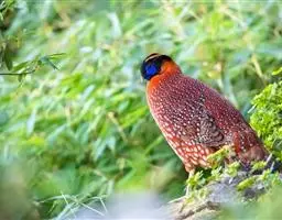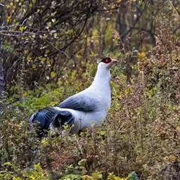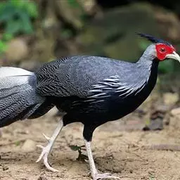 黑长尾雉大型鸡类,体长53~88厘米。雄较雌大。雄鸟通体紫蓝色,脸鲜红色,翅上有一条显著的白色翅斑…
