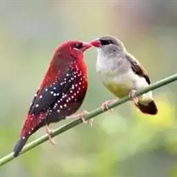 红梅花雀小型鸟类,体长9-10厘米。雄鸟通体朱红色,背、肩、胸等满布白色小斑点,…
