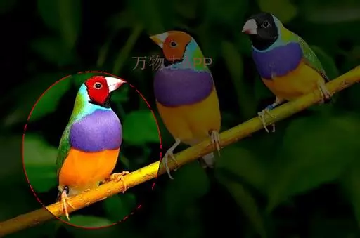 在生物学上,七彩文鸟属于梅花雀科,鹦雀属。从头到尾,长度约12-15厘米,体重约14-17克。