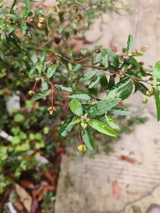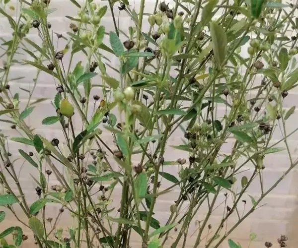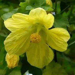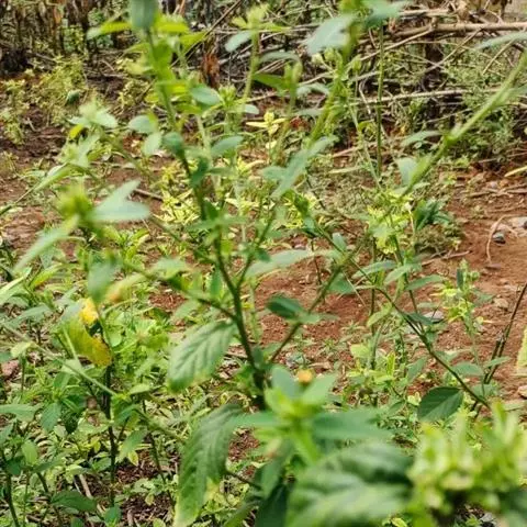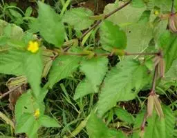黄花稔,直立亚灌木状草本,高1-2m。分枝多小枝被柔毛至近无毛。叶互生;叶柄长4-6mm,疏被柔毛;托叶线形,与叶柄近等长,常宿存;叶披针形,长2-5cm,宽4-10mm,先端短尖或渐尖,基部圆或钝,具锯齿,两面均无毛或疏被星状柔毛,上面偶被单毛。花单朵或成对生于叶腋,花梗长4-12mm,被柔毛,中部具节;萼浅杯状,无毛,长约6mm,下半部合生,裂片5,尾状渐尖;花黄色,直径8-10mm,花瓣倒卵形,先端圆,基部狭,长6-7mm,被纤毛;雄蕊柱长约4mm,疏被硬毛。蒴果近圆球形,分果爿4-9,但常为5-6,长约3.5mm,先端具2短芒,果皮具网状皱纹。花期冬、春季。