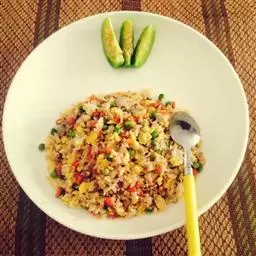 什锦炒饭是一道色香味俱全的名点,以江苏扬州的炒饭最知名。虾仁去泥肠洗净,加料酒、胡椒粉、淀粉上浆。…