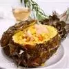 菠萝炒饭是将带皮菠萝纵切,用勺子将菠萝肉取出,切成小丁,…