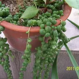 珍珠吊兰因鼓鼓、饱满翠绿的椭圆形小叶子形似珍珠状而得名。又名翡翠珠、 佛珠吊兰、翡翠珠、绿之铃,绿铃。…