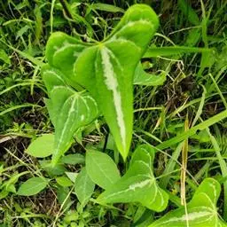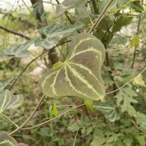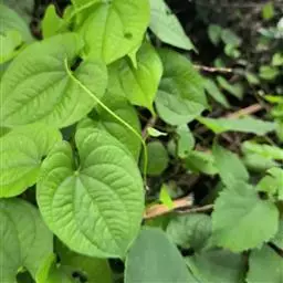 穿龙薯蓣(学名:Discorea nipponica Makino),又名:穿山龙,穿龙骨、穿地龙、狗山药、山常山、穿山骨、火藤根、黄姜、土山薯。薯蓣科、薯蓣属,多年生缠绕草本,根茎横生,圆柱形,木质,多分枝,茎近无毛。药用植物,根状茎含薯蓣皂苷元是合成甾体激素药物的重要原料;性平,味苦;归肝、肺经;民间用来治腰腿疼痛、筋骨麻木、跌打损伤、咳嗽喘息。