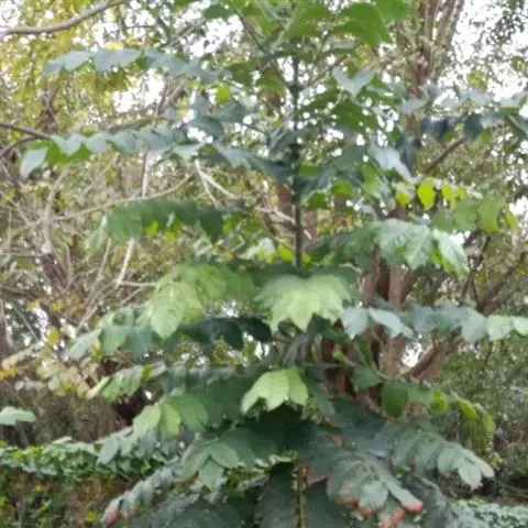 落叶乔木,高达15米。叶对生,为2回羽状复叶,羽片通常在16对以上,每1羽片有、小叶16-24对;小叶椭圆状披针形至椭圆状菱形,长6-12毫米,宽2-7毫米,顶端急尖,基部楔形,全缘。花蓝色,花序长达30厘米,直径约18厘米。花萼筒状,长宽约5毫米,萼齿5。