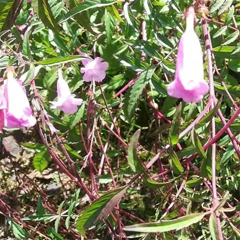 花冠筒细长,蓝色,下部微弯,上部膨大,长约18厘米,花冠裂片圆形。雄蕊4,2强,花丝着生于花冠筒中部。子房圆柱形,无毛。