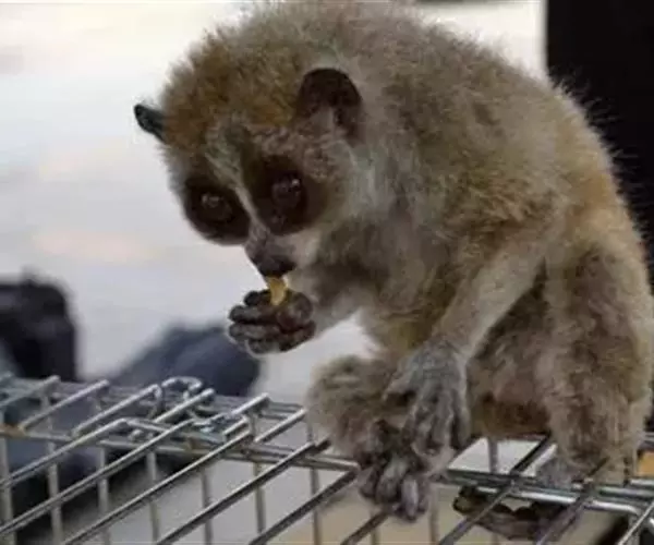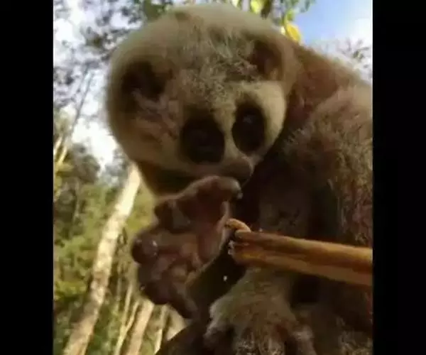 蜂猴是一种唯一的有毒灵长类动物,毒腺位于手肘部。当蜂猴遇到危险时,会把毒液投射出去。蜂猴还会把毒液抹在幼崽周围,避免幼崽被掠食者捕食。被蜂猴咬伤会导致伤口感染、肿胀或肚子疼,但毒液不致命。此外,这种毒液能防止蜂猴身上长寄生虫。
