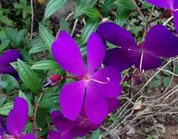 银毛野牡丹(Tibouchina aspera var.asperrima Cogn),野牡丹科蒂牡花属常绿小灌木。花枝长,花多而密,花色独特艳丽,叶质感较好,引人注目。耐修剪,花后修剪可促进枝条萌发,同时可调整株形,扦插繁殖,适应性和抗逆性强,是优良的园林观赏植物。