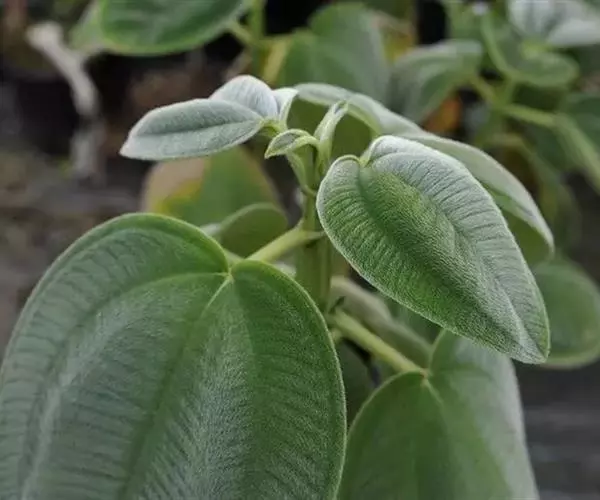 常绿小灌木,高约1m。冠开展,茎直立,四棱形,分枝多。叶柔软,阔卵形,长8~10cm,宽4~6cm,脉3~5条,表面亮绿色,背面灰绿色,密被茸毛,粗糙。圆锥花序直立,顶生,长20~30cm;花瓣紫色。花期5~7月,盛花期6月 。