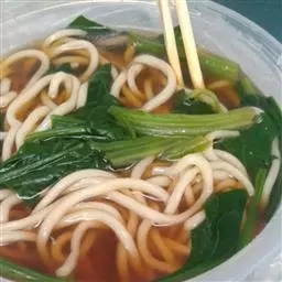 3、阳春面(面条)先煮好摆进碗里;