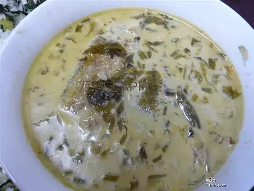 4、蒸好的鱼与高汤、雪菜一同煮约2分钟;